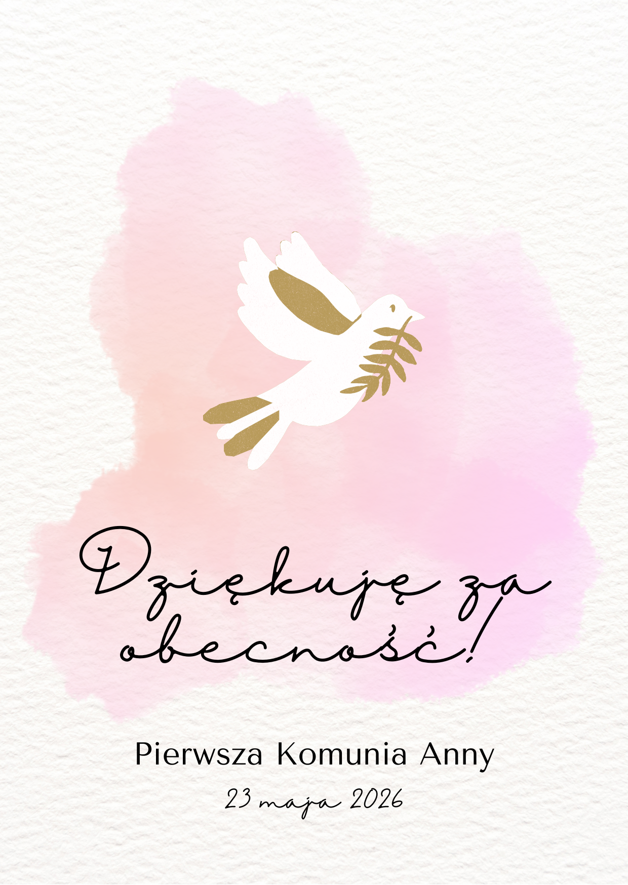 Upominek zawiera personalizowany bilecik – podczas składania zamówienia należy wybrać jego kolor (niebieski lub różowy) oraz podać imię dziecka i datę komunii.